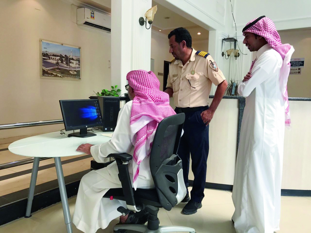 مواطن أثناء استخدام جهاز الحاسب الآلي أمس. (عكاظ)