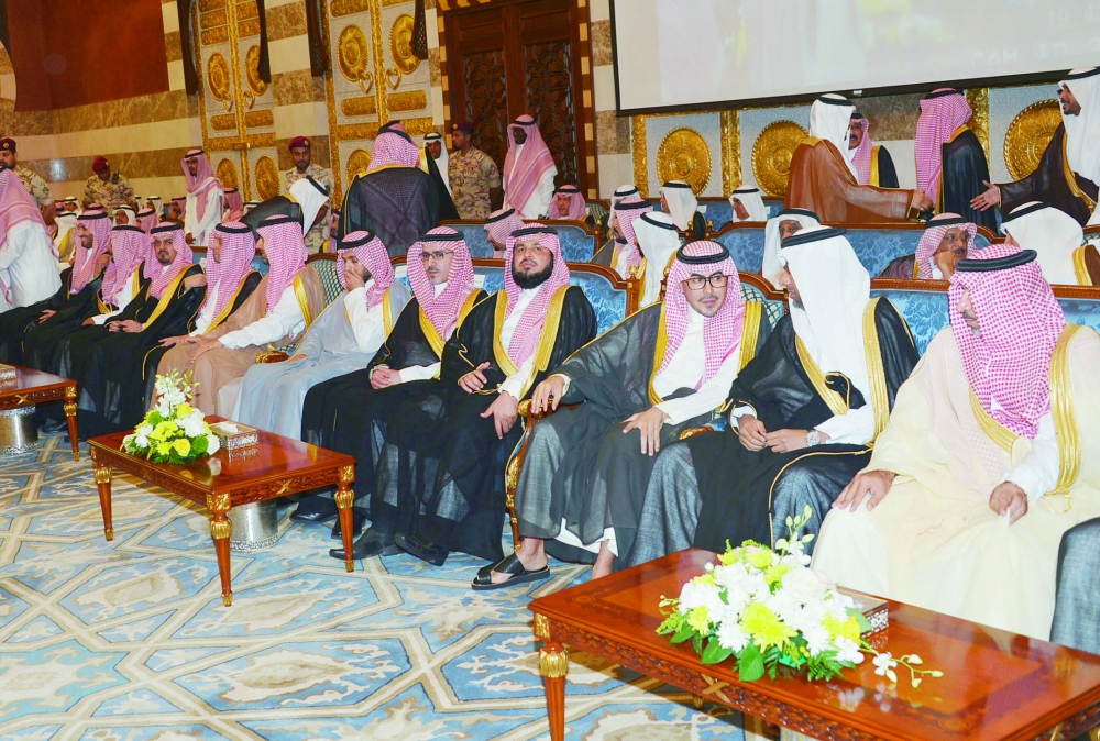 • نيابة عن منسوبي الإمارة ألقى المستشار والمشرف على مكتب أمير منطقة مكة عبدالله الحارثي كلمة، مستذكراً فيها ليلة الأحد 25 رجب، التي حملت في طياتها الخير للبلاد والعباد، ولمكة المكرمة خصوصا التي تميزت باختيار موفق لأمير شاب له من اسمه نصيب، عرف عنه حسن الخلق والدين والأدب، فكان نعمَ الاختيار، ليكون عضداً مسانداً للأمير خالد الفيصل، ليشاركه البدء بخطة المنطقة العشرية الثانية، متوشحا بهمة وإصرار الشباب العازم.