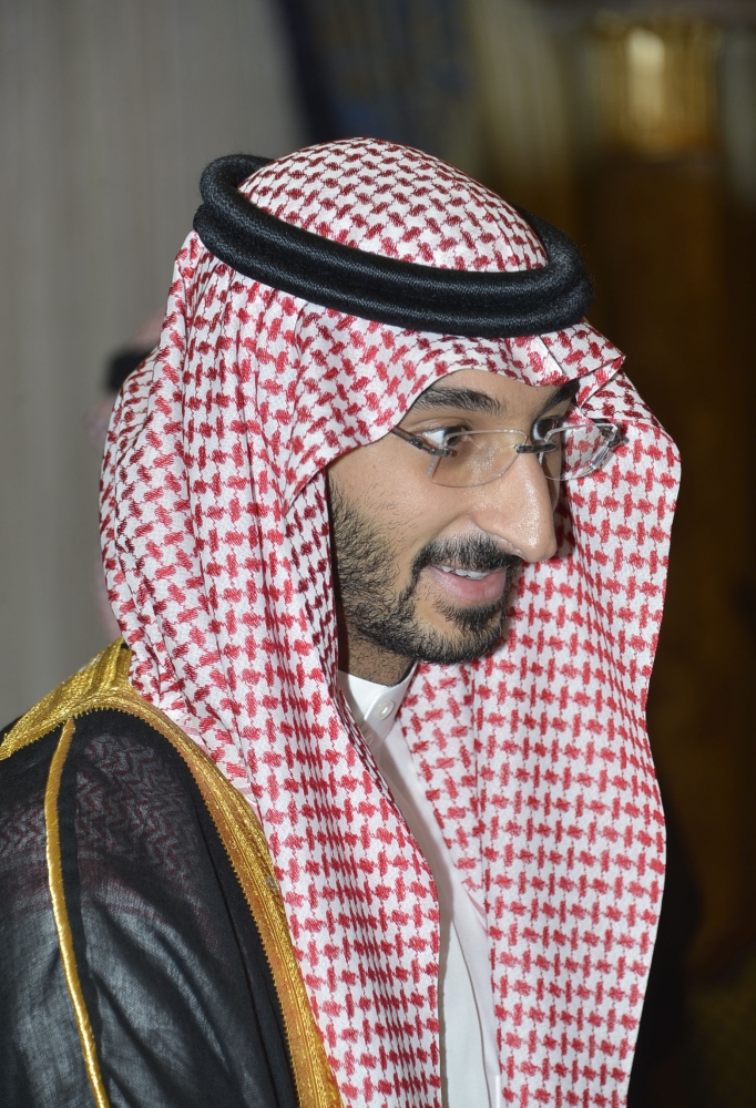 • نجل مستشار خادم الحرمين الشريفين الأمير بندر بن خالد الفيصل، الابن الأكبر يتقدم صفوف المستقبلين، مرحباً ومهللاً بكل ضيف يستقبله.