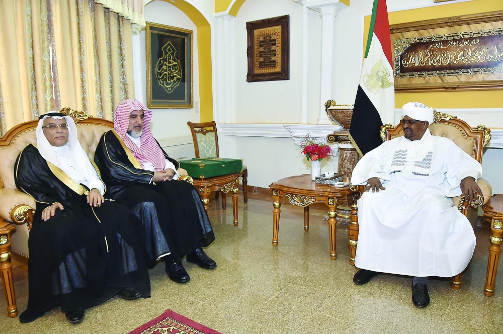 الرئيس السوداني مستقبلاً وزير الشؤون الإسلامية أمس. (واس)