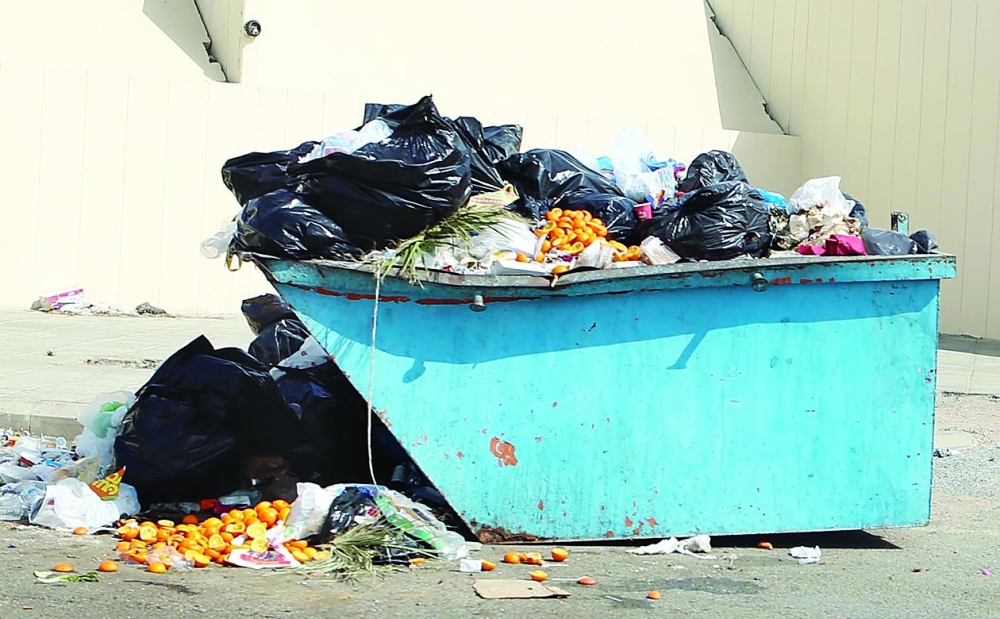 إحدى الحاويات مليئة بالنفايات في باب شريف. (تصوير: موسى الأحمري)