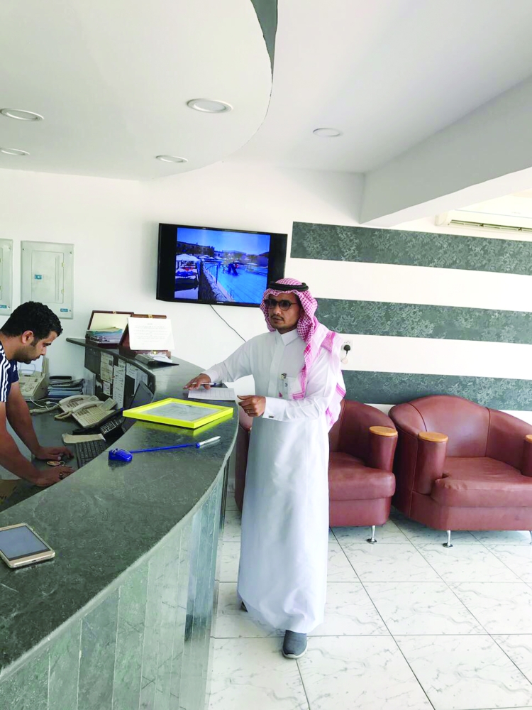 مفتشو فرع الهيئة العامة للسياحة والتراث الوطني بمنطقة تبوك خلال زيارتهم لإحدى منشآت الإيواء السياحي.