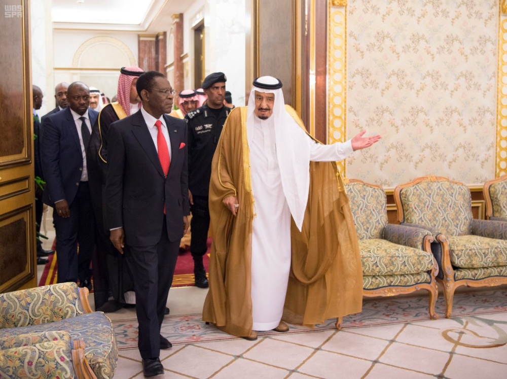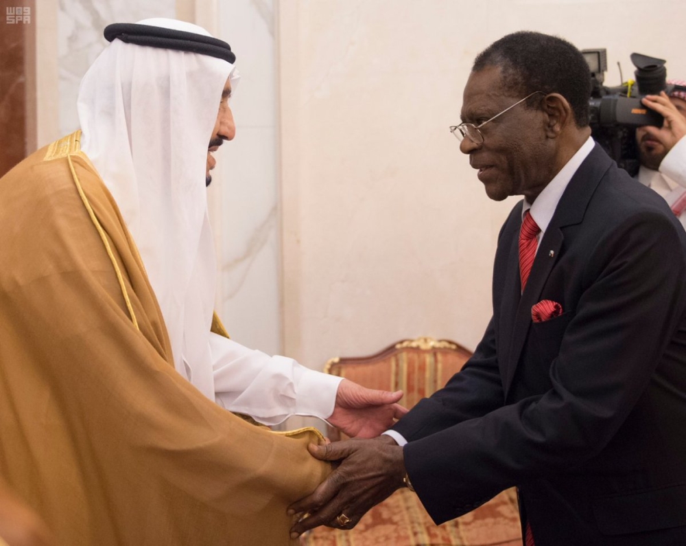 استقبل خادم الحرمين الشريفين الملك سلمان بن عبدالعزيز في قصر السلام بجدة اليوم، الرئيس أوبيانغ أنغيما أمباسوغو رئيس جمهورية غينيا الإستوائية.