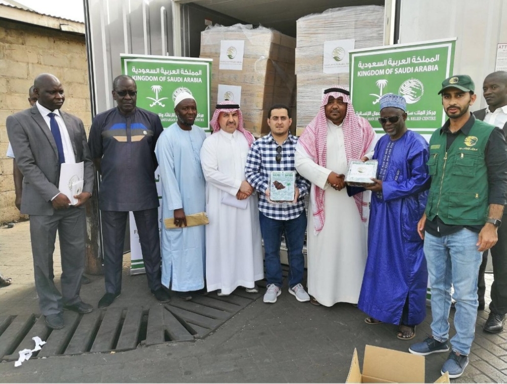 سلّم فريق مركز الملك سلمان للإغاثة والأعمال الإنسانية اليوم (الخميس) 50 طناً من التمور هدية المملكة لجمهورية جامبيا، بحضور القائم بالأعمال في سفارة خادم الحرمين الشريفين في دكار عبدالرحمن بن محمد العتيبي، وممثلي وزارة المالية بالمملكة ووزير الخارجية الجامبية أبو بكر أوساينو.