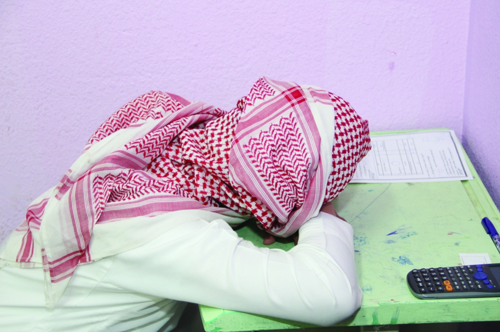 تسلط النوم على بعض طلاب المرحلة المتوسطة في حائل، مع أول يوم لهم في اختبارات مادة الرياضيات التي أشغلت تفكيرهم، وسببت لهم السهر لمراجعتها.