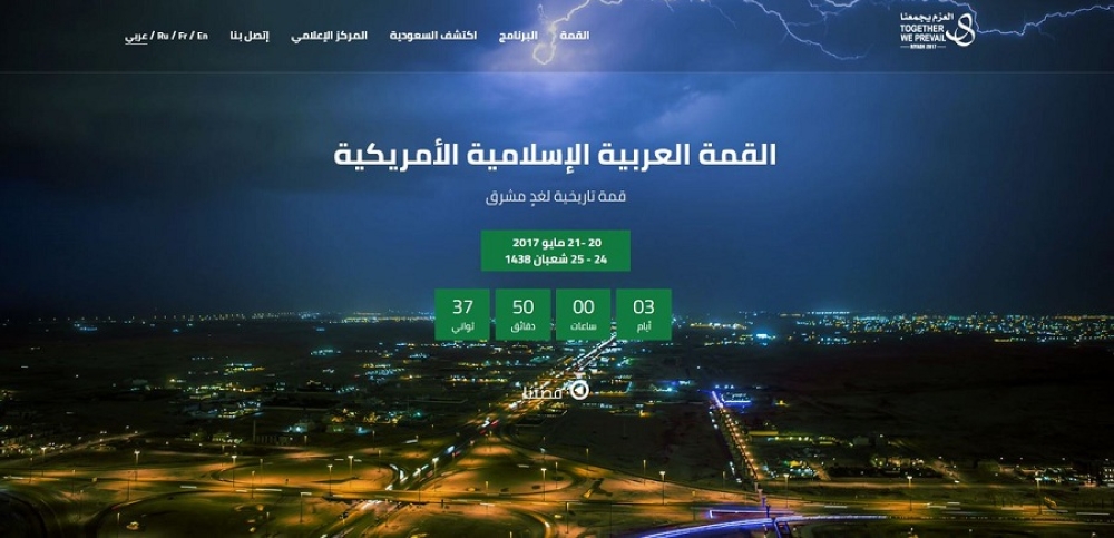 أطلق مساء اليوم الموقع الإلكتروني الرسمي للقمة العربية الإسلامية الأمريكية، التي تستضيفها المملكة العربية السعودية في مدينة الرياض، خلال الفترة من 24-25 شعبان 1438 الموافق 20-21 مايو 2017، وذلك باللغات: العربية ، الإنحليزية، الفرنسية، والروسية https://www.riyadhsummit2017.org/Arabic.