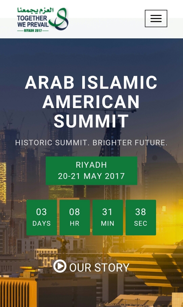 واحتلت «رسالة القمم» صدر الموقع الإلكتروني بلغاته الأربع (العربية – الفرنسية – الروسية – الإنجليزية)، تحت عنوان: ثلاثة مؤتمرات قمة... رؤية واحدة. وقالت الرسالة: «تستضيف المملكة العربية السعودية قادة من مختلف دول العالم الإسلامي والولايات المتحدة للاجتماع في هذا الحدث التاريخي المهم وبرؤية واحدة -سوياً نحقق النجاح– لنجدد التزامنا المشترك نحو الأمن العالمي، الشراكات الاقتصادية الراسخة والعميقة، والتعاون السياسي والثقافي البناء».