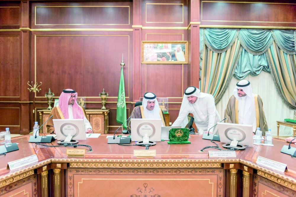 أمير المدينة يدشن الصحفة الإلكترونية أثناء اجتماعه بمجلس المنطقة. (عكاظ)