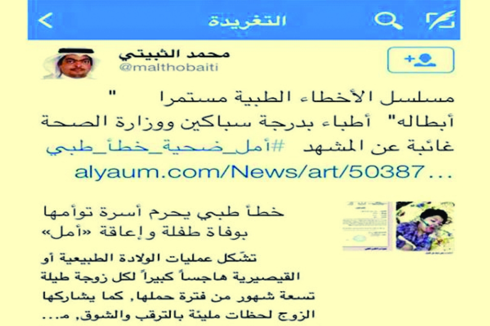 وبين أن حكم الهيئة الصحية الشرعية الأساسية في الدمام الصادر في أبريل الماضي ألزم الطبيب المتسبب في وفاة الثبيتي بدفع مبلغ 300 ألف ريال للورثة، وسداد مبلغ 10 آلاف ريال تورد لبيت المال عن طريق الجهات المختصة بالمديرية العامة للشؤون الصحية بالمنطقة الشرقية وذلك فيما يخص الحق العام، لافتا إلى أنه تم توريد المبلغ بالفعل.