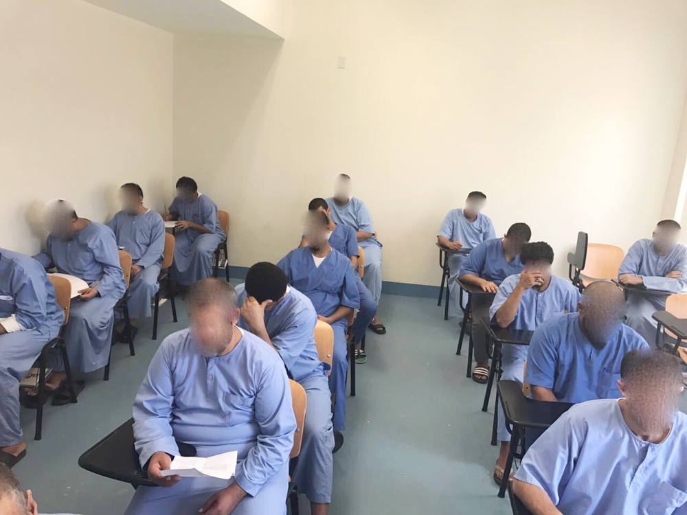 نزلاء يؤدون الاختبارات. (عكاظ)