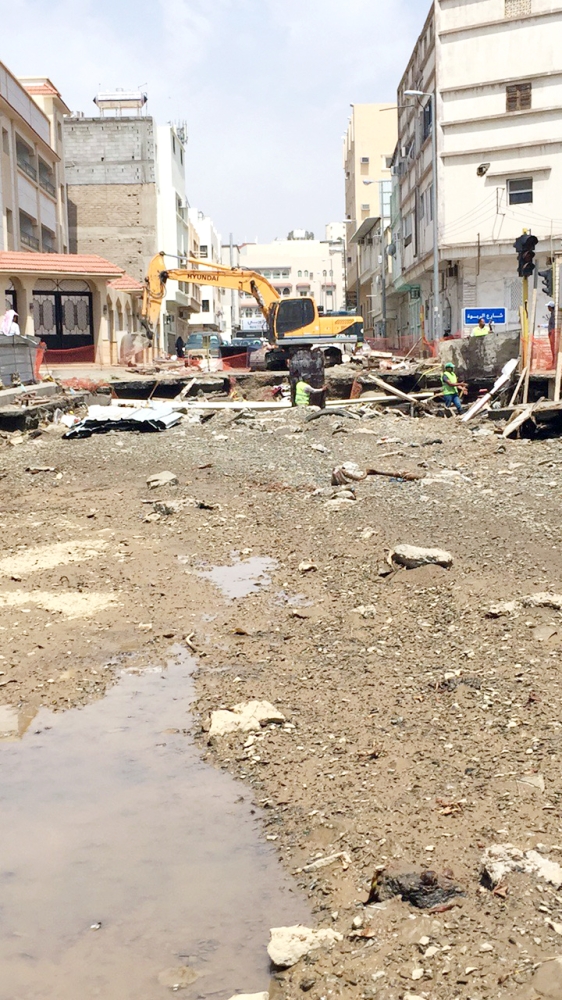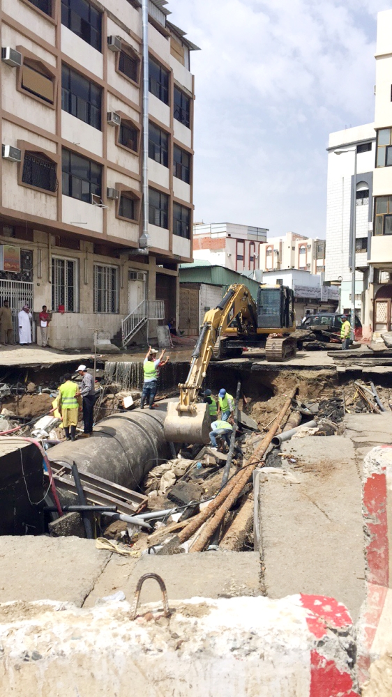 ورصدت «عكاظ» نحو 20 عاملا بمعدتين يعملون على إصلاح الخلل الكبير في الموقع.