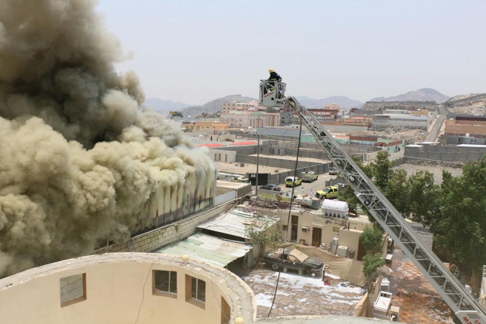 وقال المتحدث الرسمي للإدارة العامة للدفاع المدني بالعاصمة المقدسة الرائد نايف الشريف: "تلقينا بلاغاً مفاده اندلاع حريق في مستودع بحي الحسينية، حيث اشتعلت النيران في مستودع يقدر أبعاده بـ (40×100)م، يحتوي على مجموعه الأثاث والاخشاب والمراتب الاسفنجية التي تستخدم في موسم الحج".