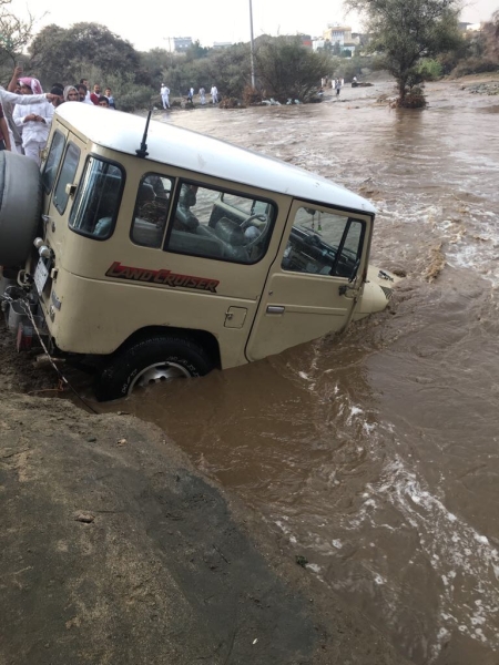وأضاف «الرجل وزوجته بصحة جيدة بعد إنقاذهما، وفرق الدفاع المدني باشرت بلاغات احتجاز سيارات بسبب الأمطار والتماسات كهربائية في عدد من المنازل ولم تسجل أي إصابات أو مفقودين، كما باشرت حريقا في مجموعة أعلاف بسبب البرق في قرية الربعة شرقي الطائف».