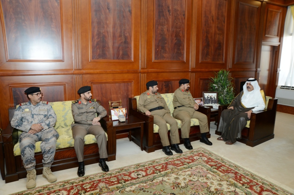 الأمير عبدالعزيز بن سعد مستقبلا اللواء الغامدي وأعضاء حملة وطن بلا مخالف. (عكاظ)
