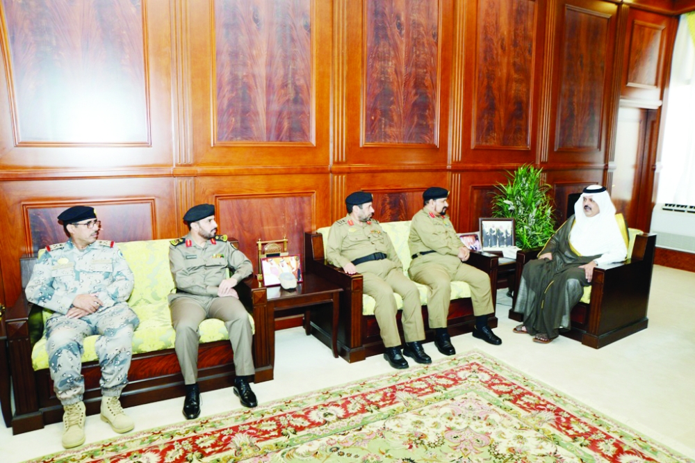الأمير عبدالعزيز بن سعد مستقبلا اللواء الغامدي وأعضاء حملة وطن بلا مخالف. (عكاظ)