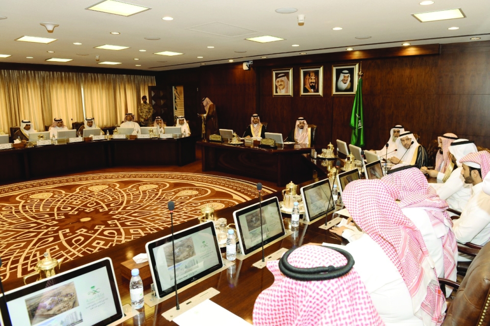 أمير عسير ونائبه خلال الاجتماع بالقيادات الصحية في المنطقة.