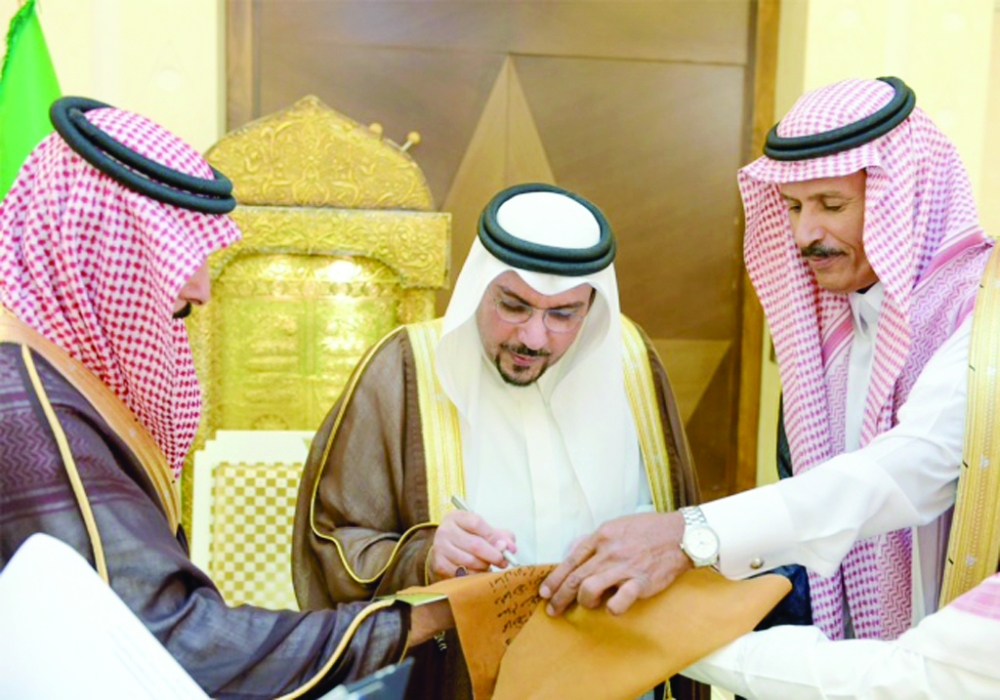الأمير فيصل بن مشعل خلال الاطلاع على المرصد الفلكي. (عكاظ)