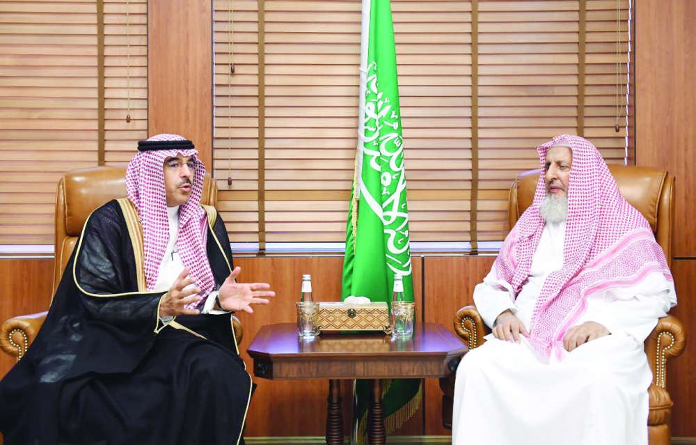 آل الشيخ مستقبلا د. عواد العواد أمس في الرياض. (واس)