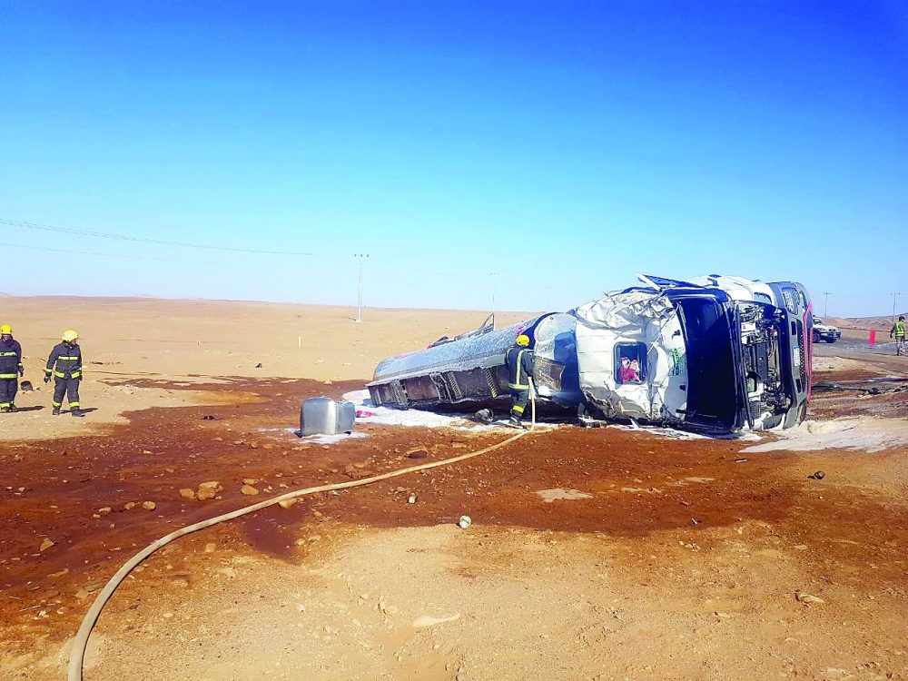تبوك: انقلاب ناقلة وقود يصيب قائدها