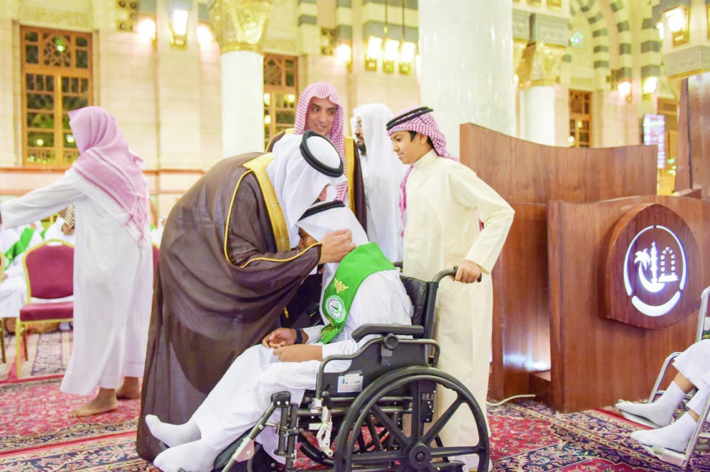 وعبر أمير منطقة المدينة عن سعادته بتكريم ذوي الاحتياجات الخاصة من حفظة كتاب الله، مثمنا ما قدموه من تحد ومثابرة نالوا بها هذا الفضل الذي يتمناه كل مسلم ومسلمة.