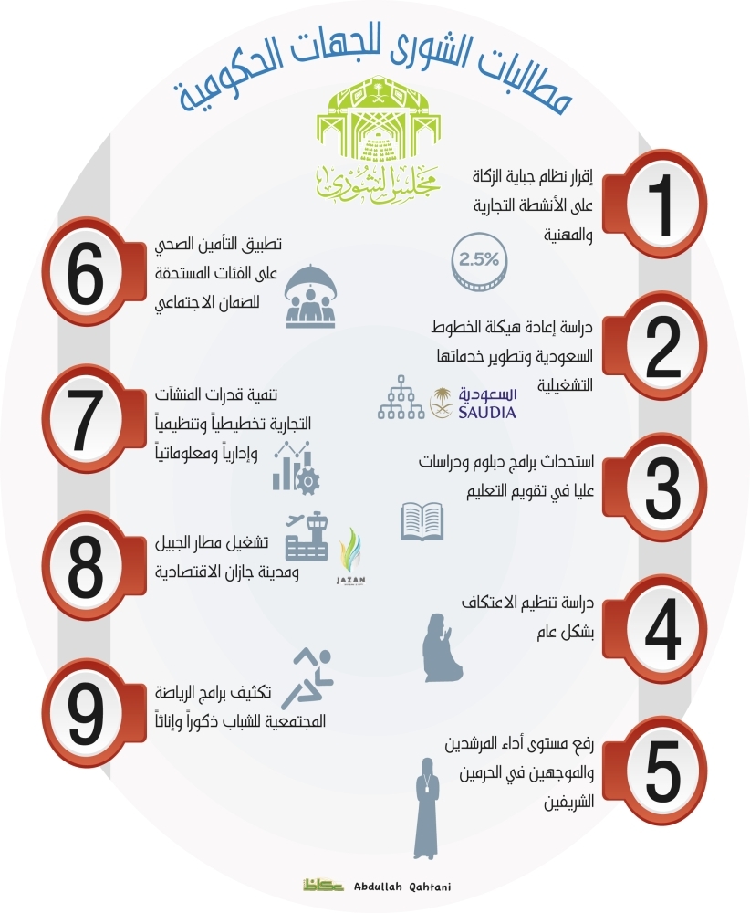 يطالب مجلس الشورى خلال جلسته العادية الأربعين من أعمال السنة الأولى للدورة السابعة الاثنين القادم، هيئة الزكاة والدخل بالإسراع في إقرار نظام جباية الزكاة على الأنشطة التجارية والمهنية، وما يتطلب ذلك من تطوير أنظمة وبرامج عمل الهيئة في المجالين الزكوي والضريبي بما يحقق مقتضى رؤية المملكة 2030.
