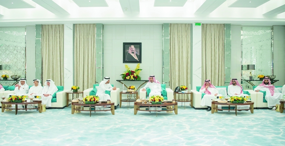 حضر الاستقبال مستشار خادم الحرمين الشريفين أمير منطقة مكة المكرمة الأمير خالد الفيصل، الأمير خالد بن فهد بن خالد، الأمير منصور بن سعود بن عبدالعزيز، المستشار الخاص لخادم الحرمين الشريفين الأمير سعود بن عبدالمحسن بن عبدالعزيز، الأمير طلال بن سعود بن عبدالعزيز، الأمير خالد بن سعد بن فهد، وزير الدولة عضو مجلس الوزراء مستشار خادم الحرمين الشريفين الأمير الدكتور منصور بن متعب بن عبدالعزيز، الأمير فهد بن عبدالله بن مساعد، وكيل وزارة الحرس الوطني للقطاع الغربي الأمير الدكتور خالد بن فيصل بن تركي، الأمير سطام بن سعود بن عبدالعزيز، ولي العهد نائب رئيس مجلس الوزراء وزير الداخلية الأمير محمد بن نايف بن عبدالعزيز، محافظ جدة الأمير مشعل بن ماجد بن عبدالعزيز، المستشار بالديوان الملكي الأمير خالد بن سعود بن خالد، مستشار خادم الحرمين الشريفين الأمير الدكتور عبدالعزيز بن سطام بن عبدالعزيز، ولي ولي العهد النائب الثاني لرئيس مجلس الوزراء وزير الدفاع الأمير محمد بن سلمان بن عبدالعزيز، الأمير سلطان بن فهد بن سلمان بن عبدالعزيز، مستشار سمو وزير الداخلية الأمير عبدالعزيز بن سعود بن سعود، الأمير عبدالعزيز بن نواف بن عبدالعزيز، نائب أمير منطقة مكة المكرمة الأمير عبدالله بن بندر بن عبدالعزيز، الأمير سعود بن سلمان بن عبدالعزيز، الأمير راكان بن سلمان بن عبدالعزيز، الأمير فيصل بن أحمد بن سلمان بن عبدالعزيز، والوزراء وعدد من كبار المسؤولين.