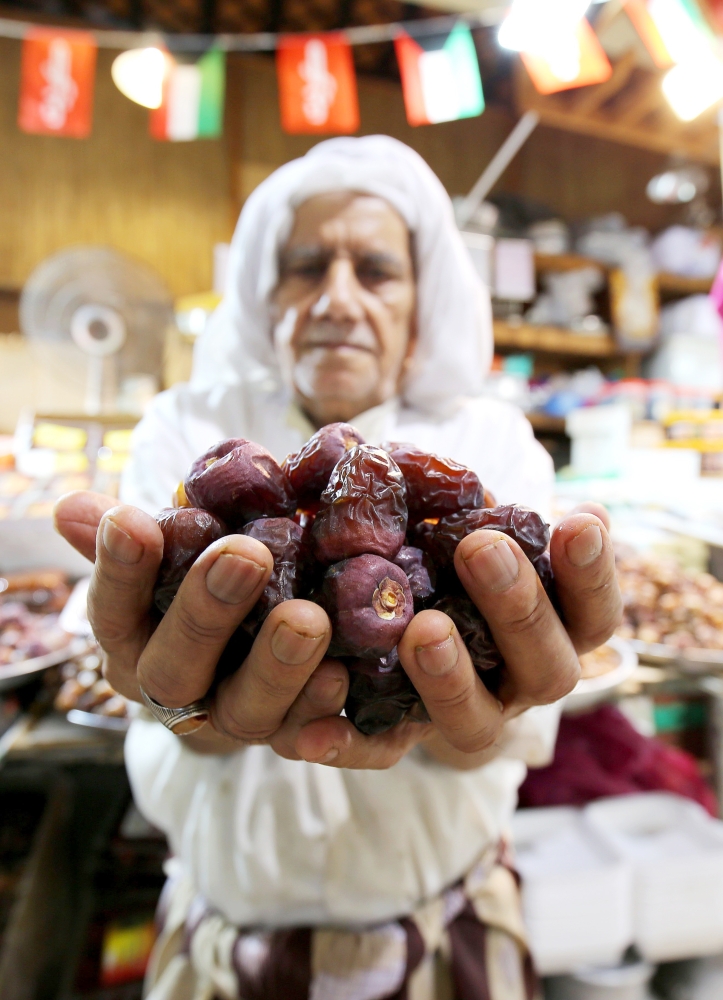 مسن كويتي يعرض تمره في العاصمة الكويت. (أ. ف. ب)