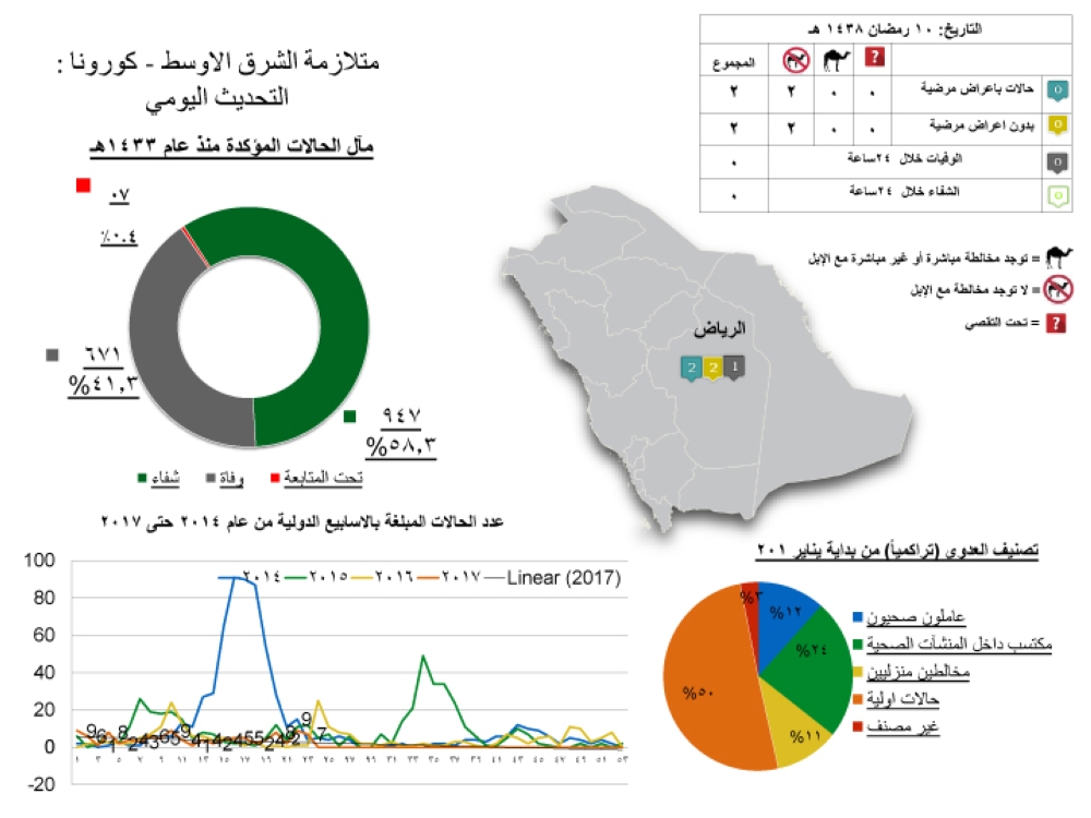 ولفتت الوزارة إلى أن الحالات مستقرة، بينما الحالة الرابعة لوافد صنفت عدواه بـ«ثانوية داخل المنشآت الصحية» وحالته حرجة، بينما حالة الوفاة لمواطن 63 عاماً، كان يشكو من أمراض مزمنة، ليصبح إجمالي المصابين منذ تسجيل أول إصابة في شوال 1433، إلى 1557 حالة، شفيت منها 946، وتوفيت 671، وما زالت 13 حالة تحت العلاج.