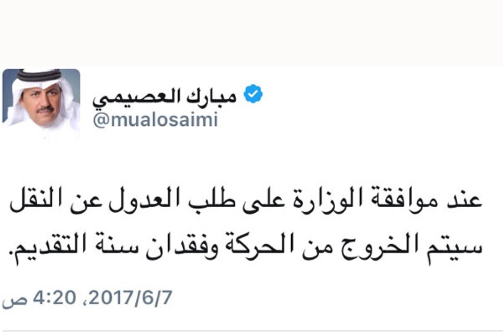 وأضاف العصيمي انه عند موافقة الوزارة على طلب العدول عن النقل سيتم الخروج من الحركة وفقدان سنة التقديم.