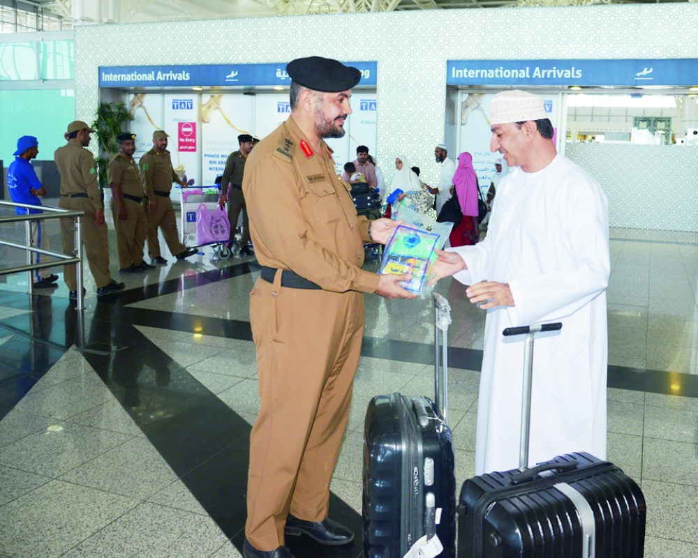 أحد المسافرين يتسلم وجبة إفطار في مطار المدينة المنورة. (تصوير: عبدالمجيد الدويني)
