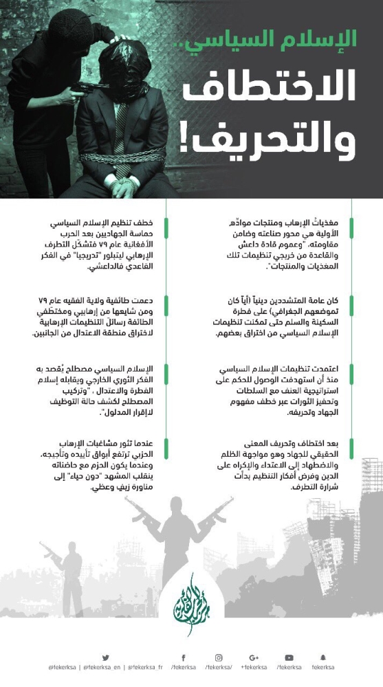 (الإسلام السياسي ..الاختطاف والتحريف) وجاءت التغريدات كالتالي: