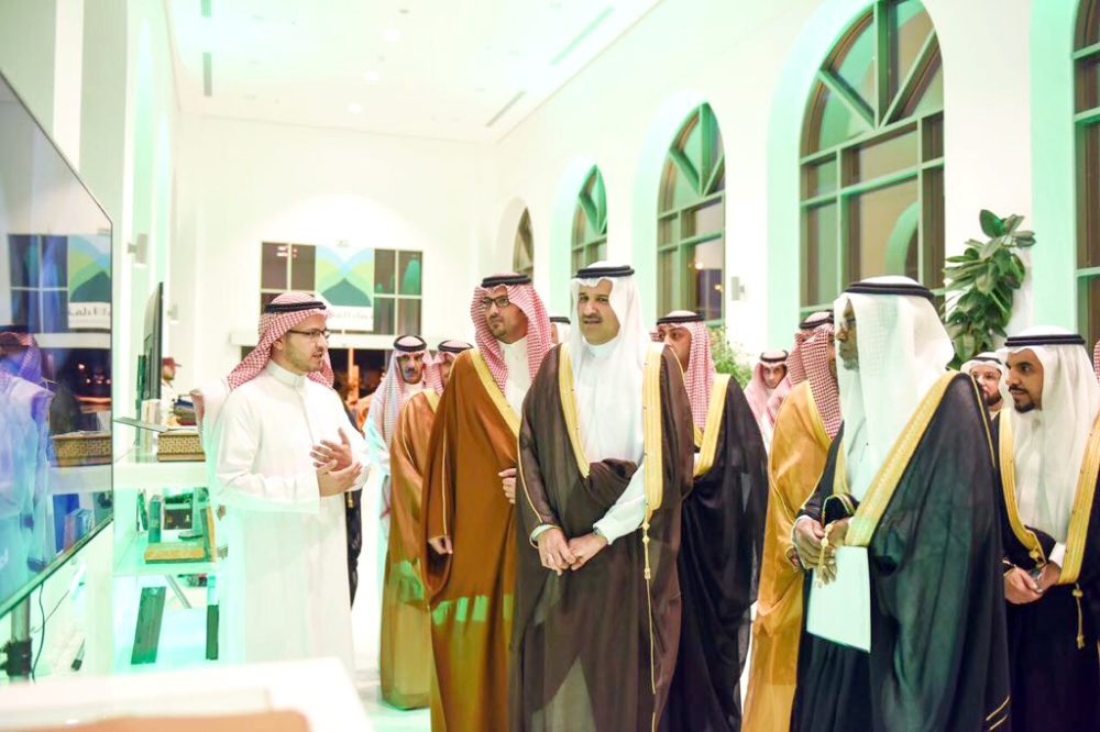 أمير المدينة خلال اطلاعه على المنتجات والصناعات التي تم إنجازها في معامل «نماء المنورة».