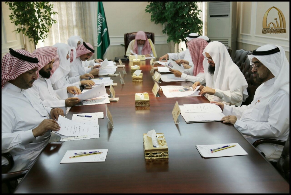آل الشيخ مترئسا اجتماع مجلس نظارة الأوقاف. (عكاظ)