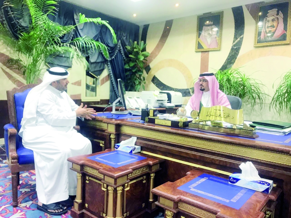 أمين منطقة الباحة متحدثاً للزميل علي الرباعي. (عكاظ)