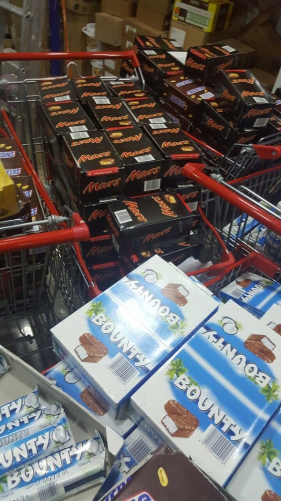 كما باشرت الوزارة بلاغ مواطنة في حائل، إذ تم ضبط 1645 قطعة شوكولاتة منتهية الصلاحية، وعليه تم مصادرة جميع الكميات منتهية الصلاحية واستدعاء صاحب المحل لإكمال الاجراءات النظامية بحقه.