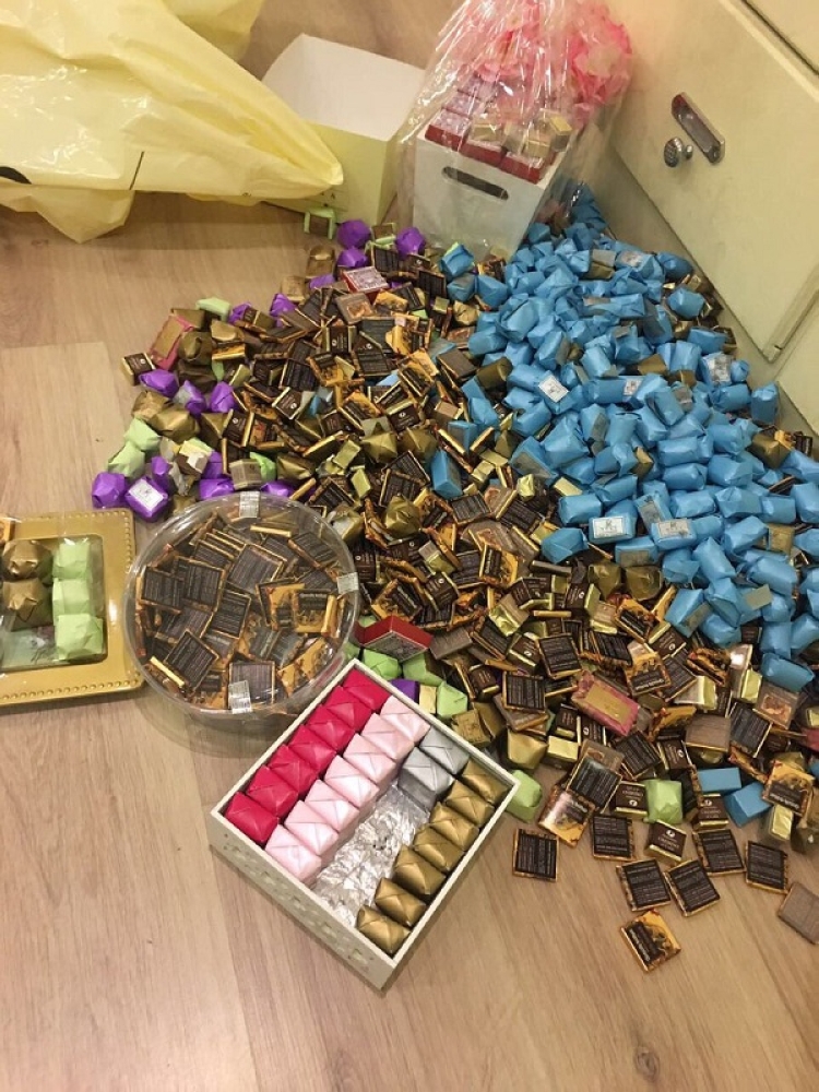 فقد ضبطت الوزارة في ليلة العيد بالأحساء 23 ألف قطعة شوكولاتة مخالفة لنظام البيانات التجارية لعدم وجود بلد منشأ وبيانات باللغة العربية، وعليه تم استدعاء صاحب الشركة لإكمال الاجراءات النظامية بحقه.