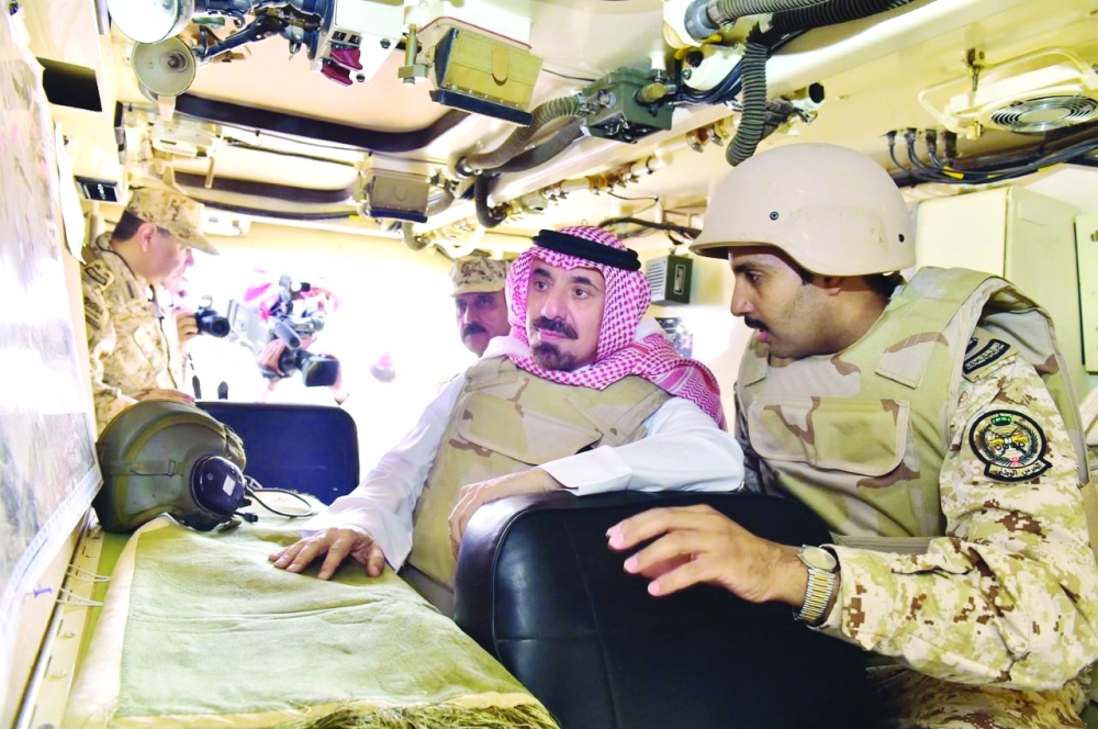 وقال في زيارة ميدانية أمس (الثلاثاء) للخطوط الأمامية للواء الأمير تركي بن عبدالعزيز الأول الآلي، نقل خلالها تهاني خادم الحرمين الشريفين الملك سلمان بن عبدالعزيز، وولي عهده، بعيد الفطر المبارك، إلى رجال الحرس الوطني المرابطين على الحدود، كما نقل تحيات وزير الحرس الوطني الأمير متعب بن عبدالله، «أنقل إليكم فخر واعتزاز الشعب السعودي الكريم، على ما تقومون به لخدمة دينكم ثم ملككم ووطنكم، ووقوفكم على هذه الثغور، وهو ليس بمستغرب على رجال ساروا على ديدن الآباء والأجداد، في إرث يمارسونه، ويورثونه للأبناء والأحفاد، فالشكر والدعاء لكم بالتوفيق والنصر، وأن يحفظكم الله ويثبتكم ويسدد رميكم، ويرحم الشهداء، ويمن على المصابين بالشفاء العاجل».