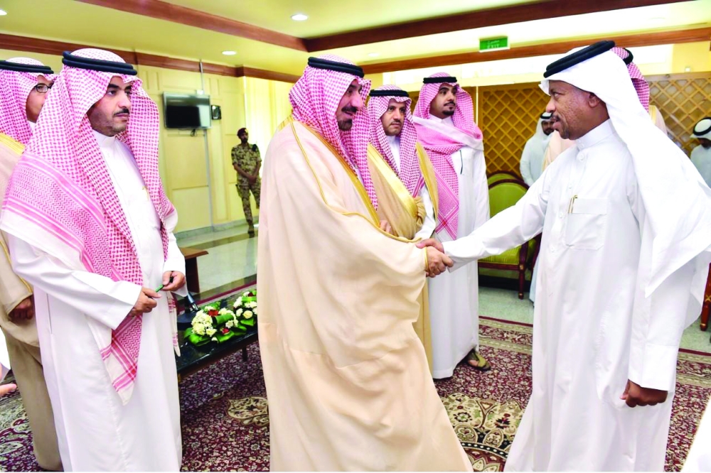 الأمير جلوي بن عبدالعزيز مهنئا منسوبي إمارة نجران. (عكاظ)