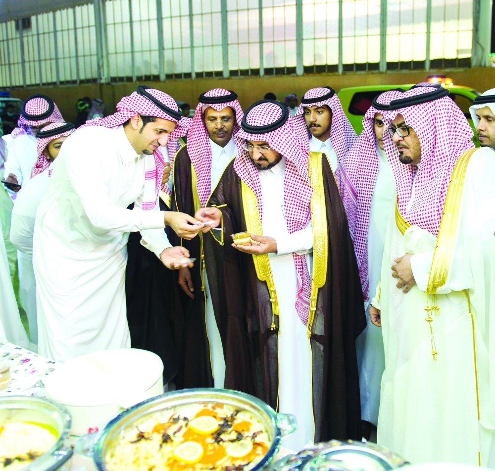 وكيل إمارة الباحة يتذوق منتجات الأسر المنتجة في المهرجان. (عكاظ)