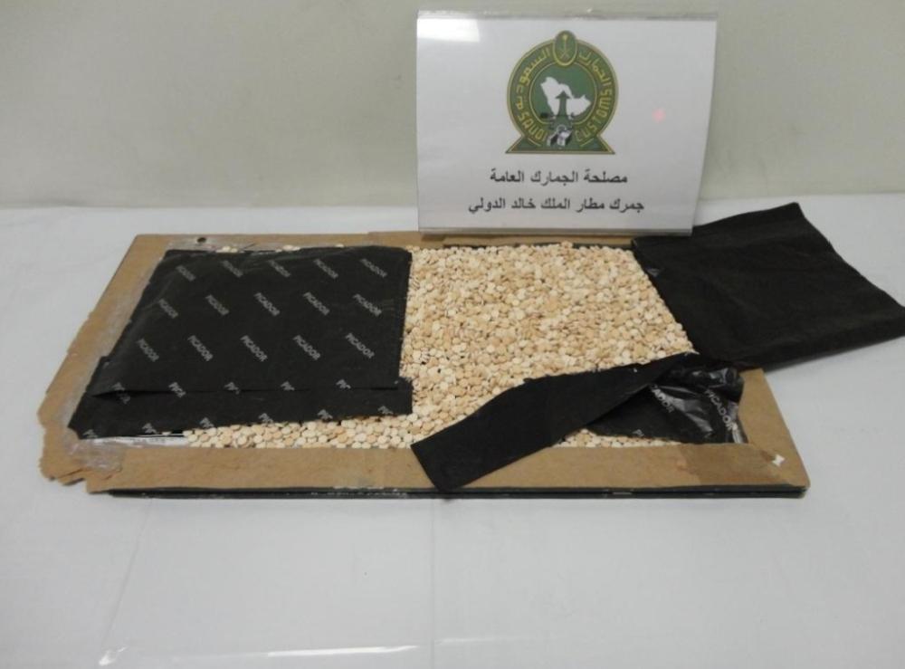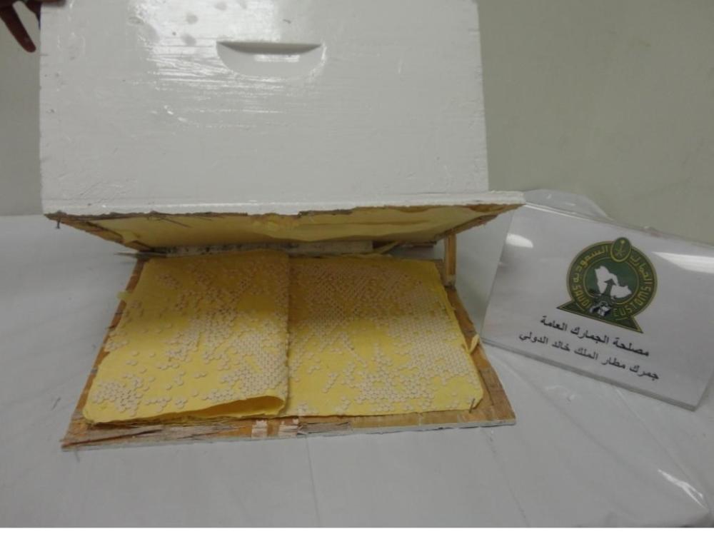 وأوضح مدير عام جمرك مطار الملك خالد الدولي محمد العقيّل، أنه وردت للجمرك إرسالية عبارة عن أربعة صناديق خشبية تحتوي على كمية من "العسل" وبتفتيشها عُثر على (12.108) حبة، كانت مخفية في مخبأ تم تجهيزه لغرض التهريب في أسفل الصناديق، كما عُثر على كمية أخرى من حبوب الكبتاجون بلغت (7.710) حبة، كانت مُخبأة في إرسالية وردت للجمرك عبارة عن "لوحة خشبية" وذلك بإخفائها في تجويف بداخل اللوحة .