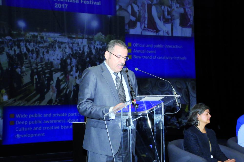 أمين الأحساء خلال تقديم ورقة العمل. (عكاظ)