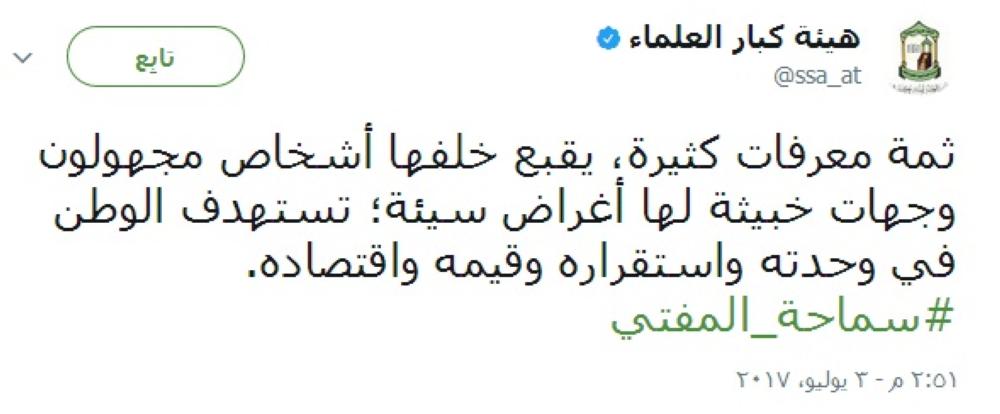 "كبار العلماء": معرفات مجهولة وخبيثة تستهدف وحدة الوطن واستقراره
