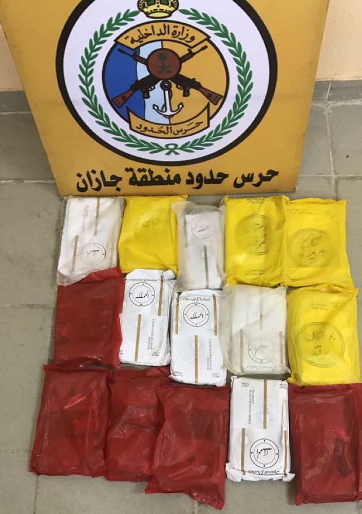 وأشار إلى أنه تم رصد عدة أشخاص أثناء محاولتهم التسلل للمملكة قادمين من الأراضي اليمنية بغرض تهريب المواد المخدرة وبث هذه السموم للنيل من أبناء المملكة، ولمقتضيات الموقف فقد تم التعامل معهم بكل حزم وقوة، ما أسفر عن القبض على (14) شخصاً من الجنسية الإثيوبية، و(5) أشخاص يمنيين.