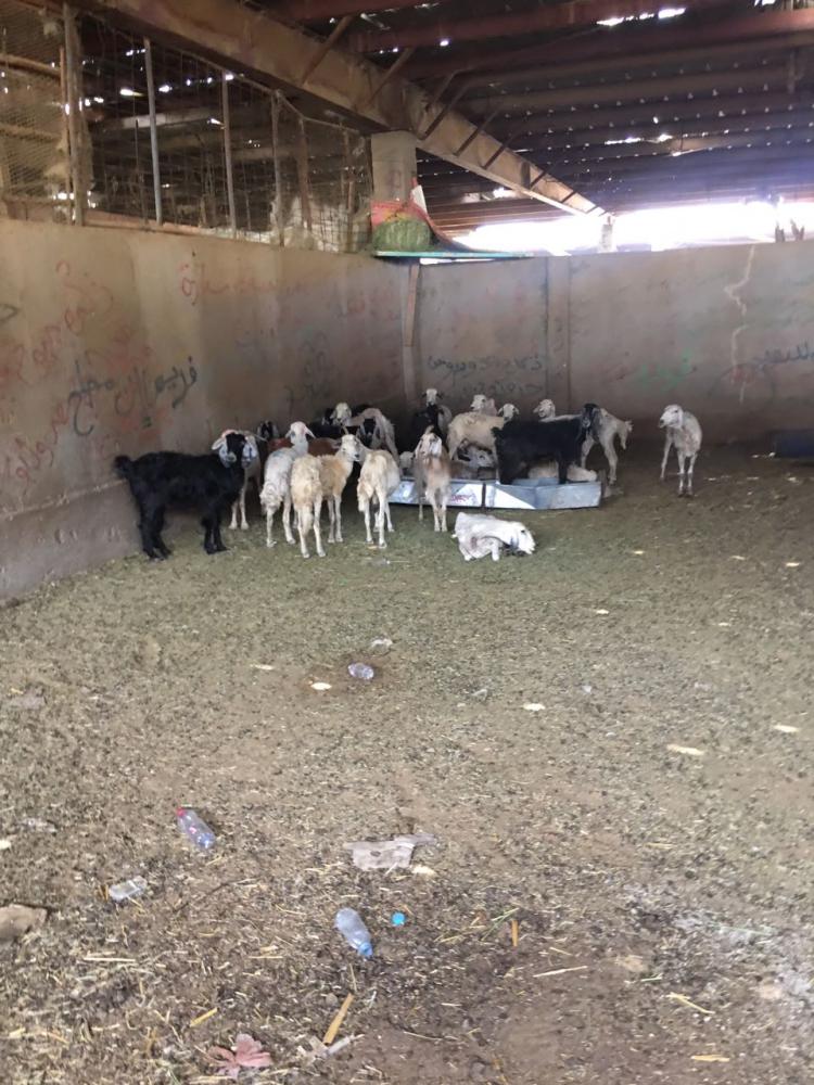 الأغنام داخل حوش المسلخ العشوائي. (عكاظ)