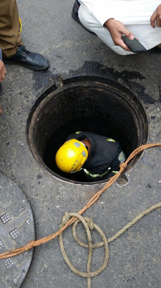 استنفار لإخراج العاملين من غرفة الصرف الصحي.