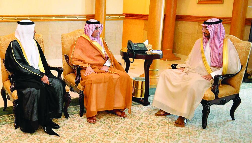 الأمير عبدالله بن بندر مستقبلاً نائب وزير النقل المهندس سعد الخلب. (عكاظ)