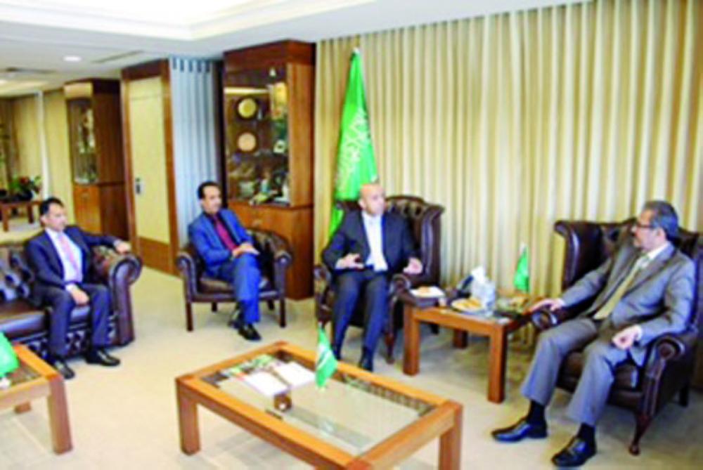 الملحقان الثقافي والصحي في بريطانيا في اجتماعهما. (عكاظ)