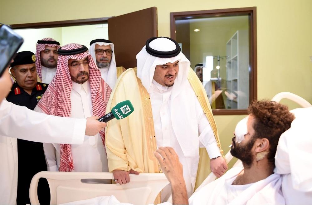 واطلع أمير منطقة الرياض بالنيابة على الرعاية الطبية المقدمة للمصابين، كما استمع إلى شرح عن مايقدم لهم من خدمات ومتابعة علاجية، مشدداً على الاهتمام وتقديم الرعاية الكاملة .