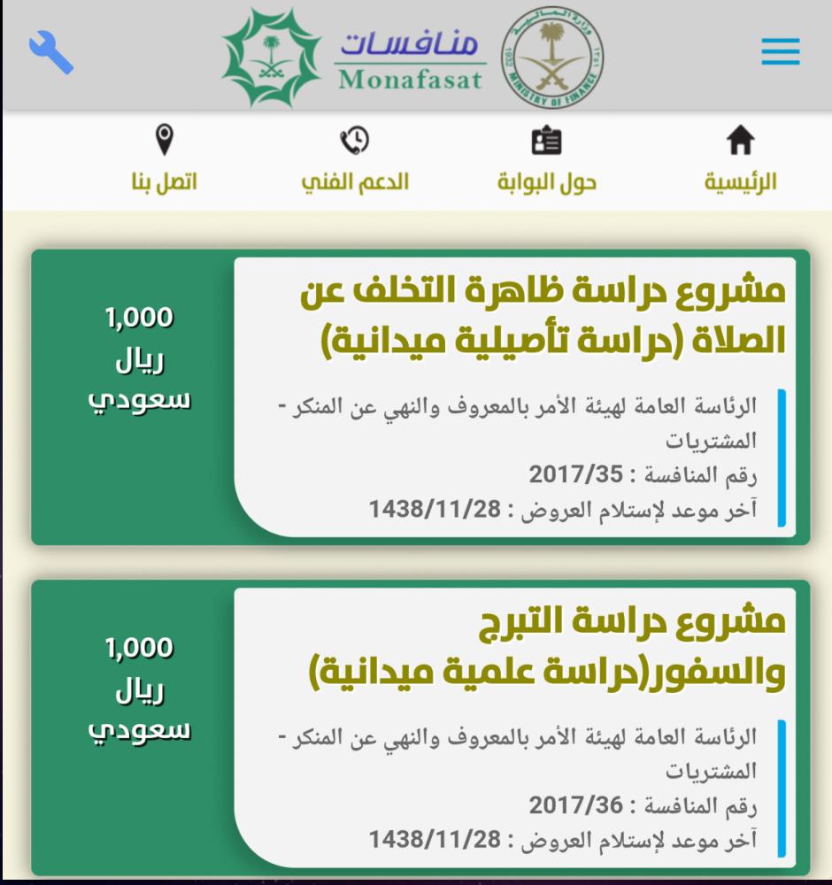 أعادت هيئة الأمر بالمعروف والنهي عن المنكر طرح مناقصتين كانت قد تقدمت بهما في وقت سابق، تتحدث إحداهما عن ما سمته بـ«التبرج والسفور»، وأخرى تبحث تأصيليا في أسباب «التخلف عن الصلاة».