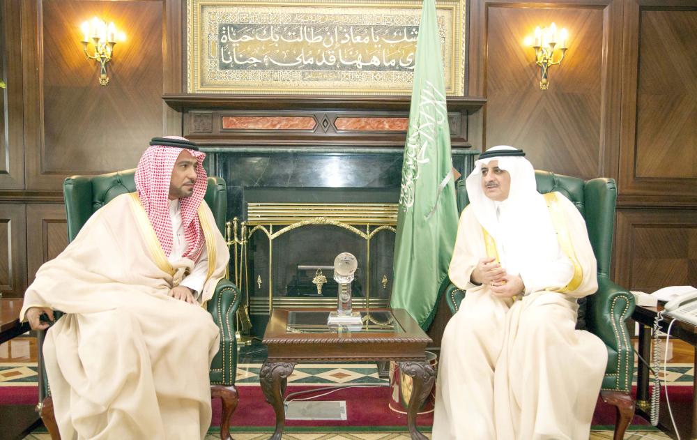 الأمير فهد بن سلطان مستقبلا الحقيل. (عكاظ)